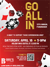 Join us for An Evening of Hope, a classic casino fundraiser on April 18, 2026, at the Holiday Inn & Suites, 75 S 37th Ave, St. Cloud, MN! This exciting night will feature a delicious meal, bar service, music, a silent auction, and thrilling casino games — all to support a meaningful cause rooted in love, remembrance, and hope.
